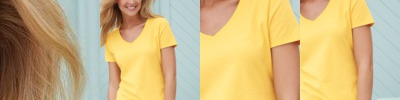 - Fashion cut with double-needle stitched bottom hem