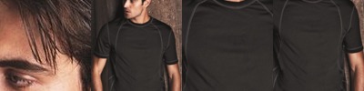 A tailored look in a custom contoured fit jersey, with contrast color stitching.