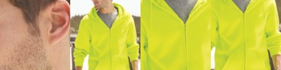- Contrast taping finish on inside hood and back neck