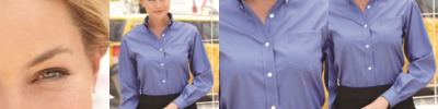 Cotton rich blend is soft, pill and stain resistant and wrinkle-free for on-the-job staying power.