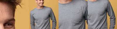 The sleek, long-sleeve natural cotton pullover tee features a left chest double-needle five-point pocket.