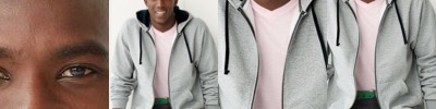 - Raw edge seams on raglan shoulders, side gusset panels, pocket and waistband