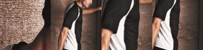 - Contrast color neck trim and sleeves