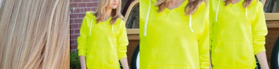 Contrast color side panels and a split-front pouch pocket add personality and functionality.
