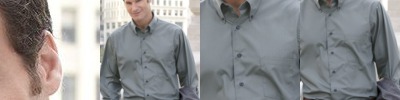 - Two pearlized buttons on adjustable cuff with button-through sleeve placket